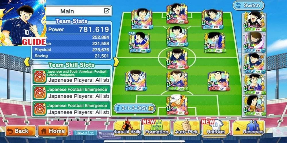 - Edit Team: Combine whatever players, formations, and Team Skills you like to power up your team! Players and uniforms can be customized, so you can make your very own dream team!