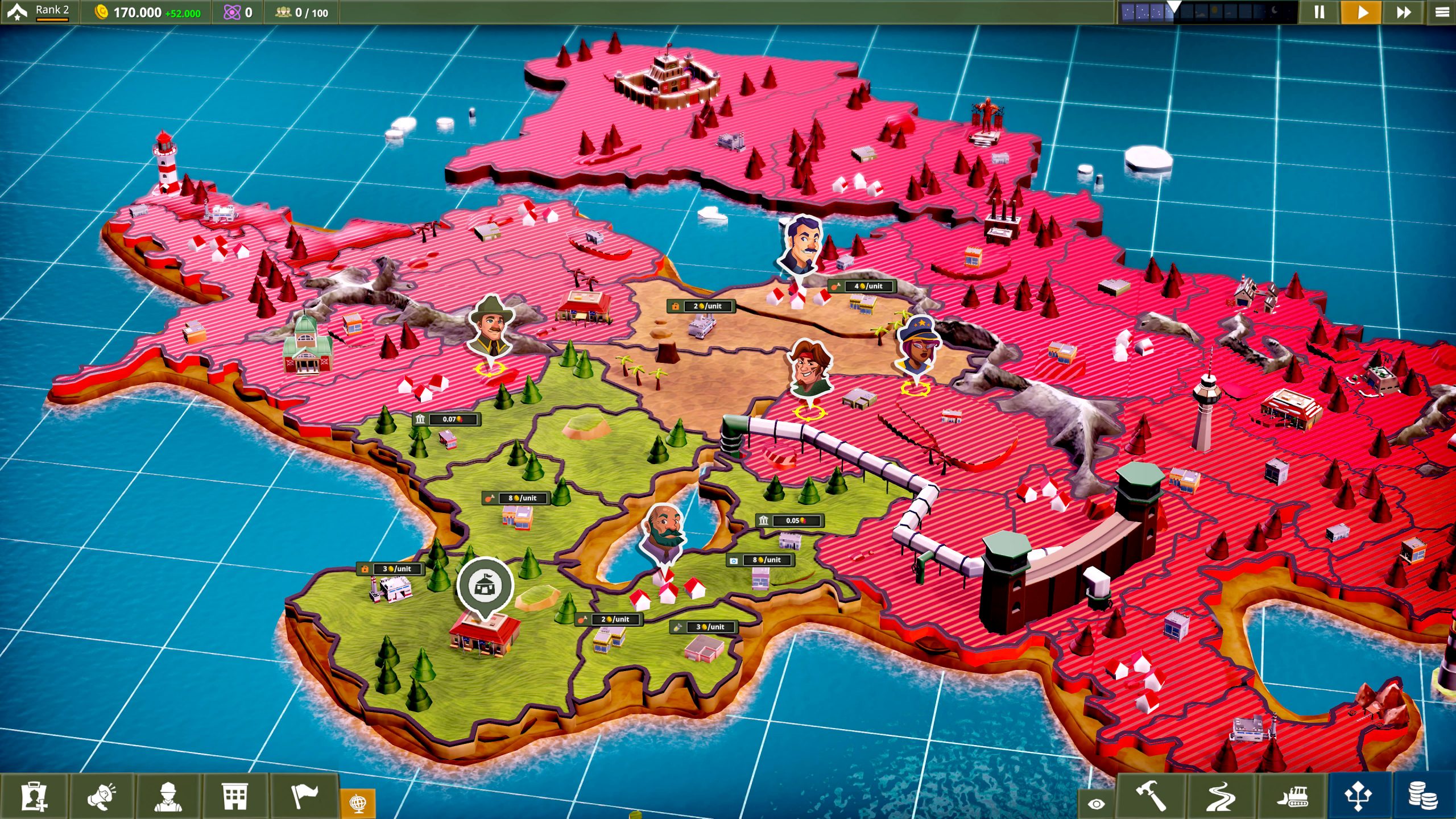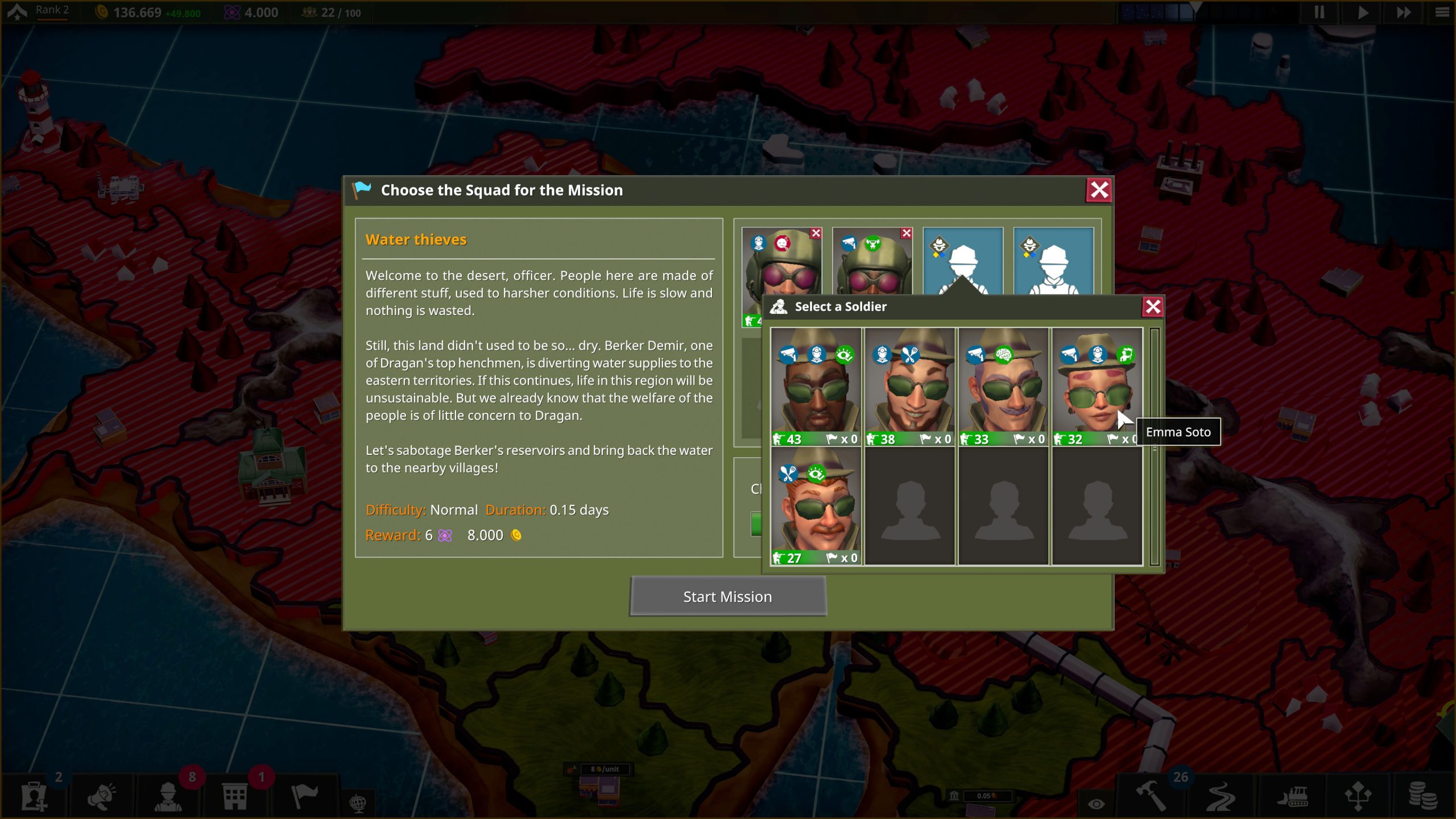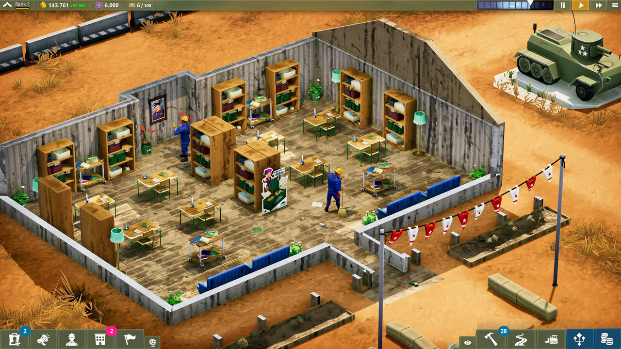 Manage Everything – Training your soldiers and maintaining your camp is expensive. Manage your economy and build an efficient infrastructure to keep the camp running like clockwork. Set the schedule of the staff and soldiers and fulfill their basic needs. Decide the resource providers and choose the supply routes. Get extra funds by liberating territories, manage camps in different biomes and adapt to the dynamic challenges of each location.