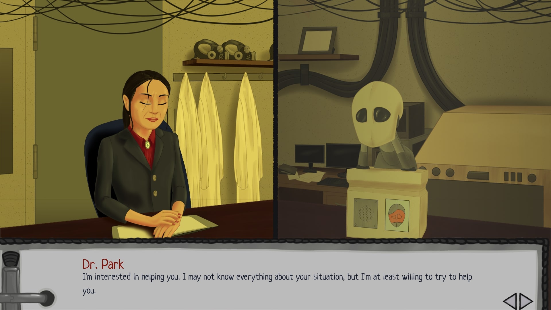 Syntherapy sees you play as Dr. Melissa Park, a psychotherapist called to Petrichor University by research student Tara Northrop. Tara has created an experimental therapy AI that is showing signs for concern.